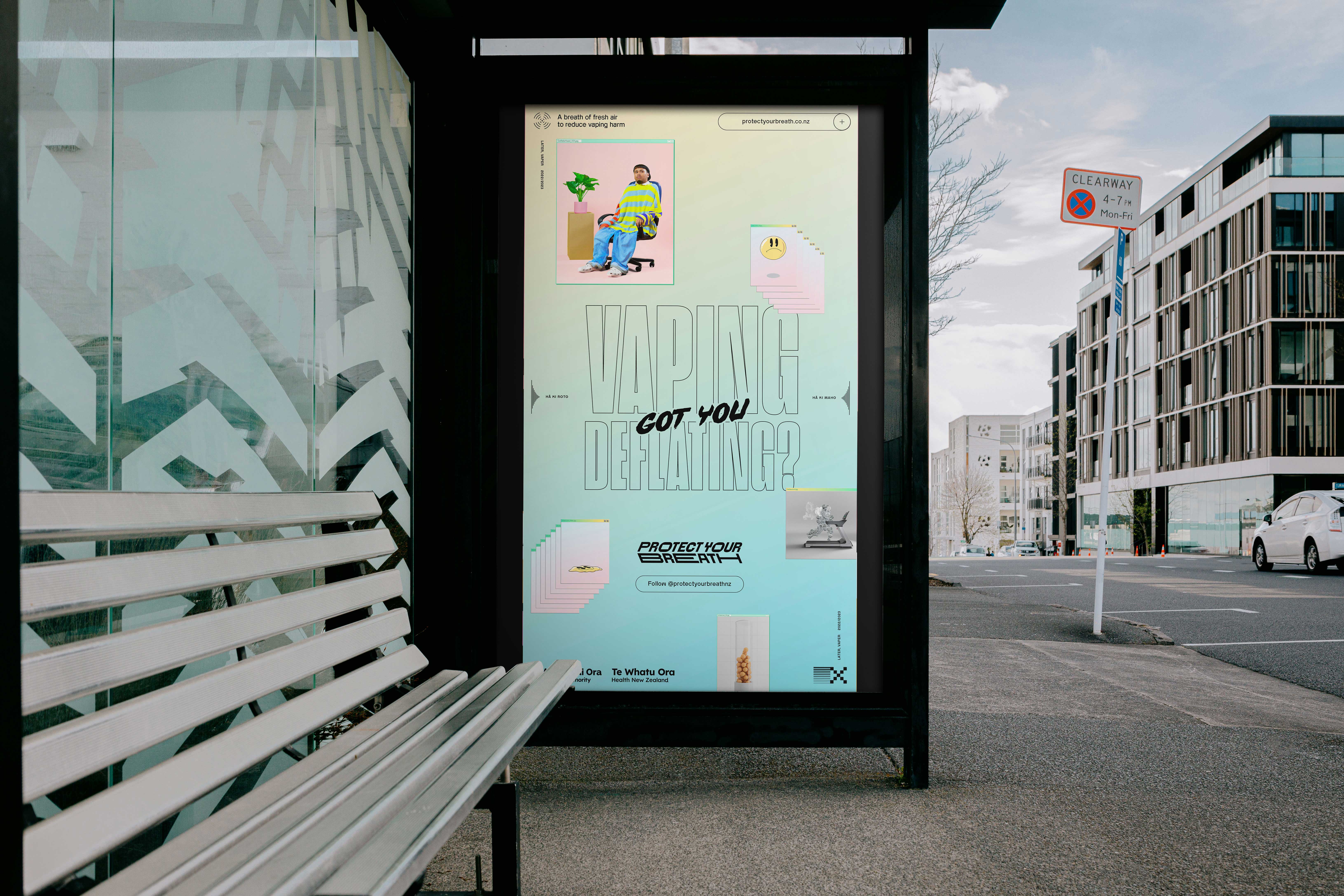 In collaboration with our team of co-designers, the Hā Collective, and partners Te Whatu Ora, we created Protect Your Breath – a campaign that aims to reduce vaping harm for young people by anchoring itself in the realities and ideas of rangatahi.
